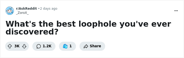 To find out more about how this conversation started, we got in touch with Reddit user_ZoroX_, who posed the question: “What’s the best loophole you’ve ever discovered?”