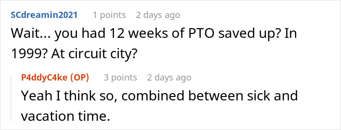 It’s refreshing to read about an employee who had clearly done their research and knew their rights. When the store manager didn’t want to give u/P4ddyC4ke the week off back in 1999, the OP told him that he should speak to HR, otherwise, he’d take the 12 weeks off that was owed to him, legally. The worker also had accumulated enough time off to be paid throughout this period.