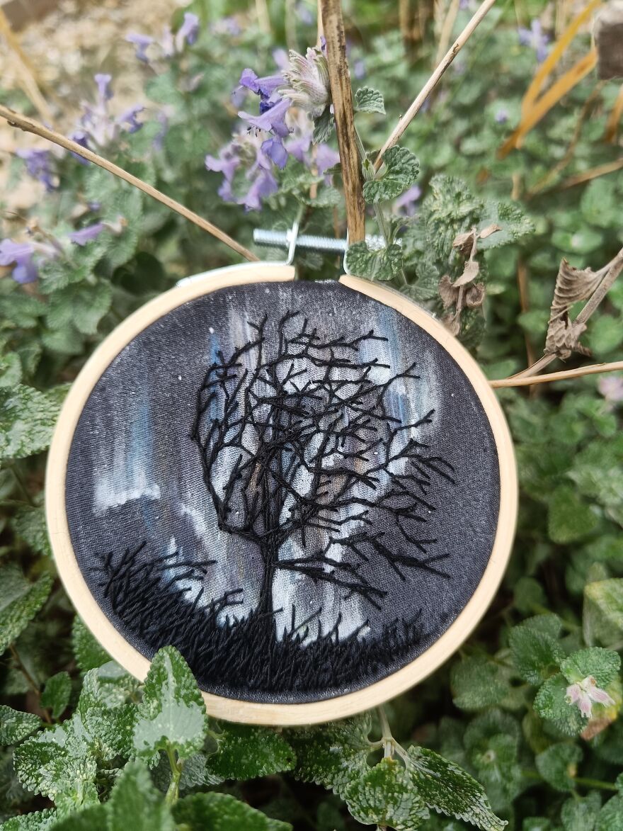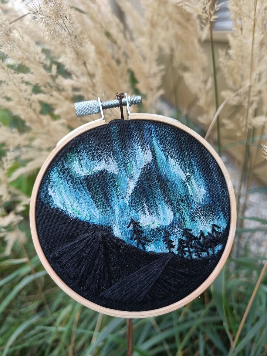 After becoming a mom, I needed to find a creative outlet. Embroidery was my savior. It’s something that can be done in between feedings, snuggles, walks, and naps. Over time, I experimented with mixed media, eventually finding my way to these embroidery art aurora borealis pieces!I have always been a creative person, crafting something whenever possible. When I became a mom a year ago, I kind of lost myself. It took me quite some time to find my creativity again – and to remember how much I love to create.I combined embroidery with painting and now I create these dreamy pieces that bring me so much joy, calm and inner peace! Come visit me and watch me create.More info:Instagram|Etsy|tiktok.comThis post may includeaffiliate links.