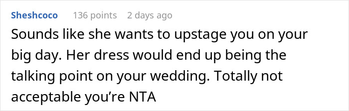 While this can still be the case, recent studies have shown that US bridesmaids can sometimes be expected tospend around $1,700. Of course, this is not the case for OP, although one could argue that the sister did have to pay for the dress herself. However, the entire crux of the story revolves around the sister actively choosing a specific kind of dress and refusing to pair it with any underwear.