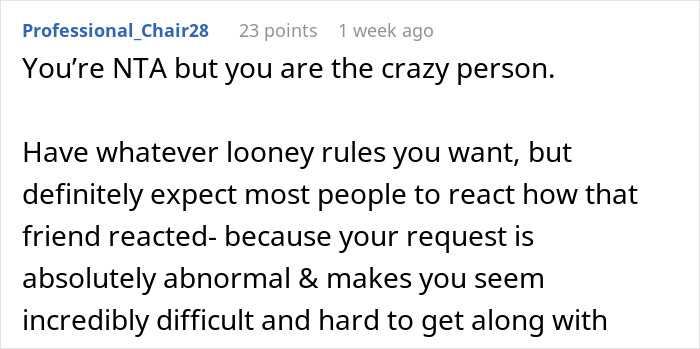A lot of commentators thought the ask is unreasonable and even voiced their concern about the Original Poster’s mental health