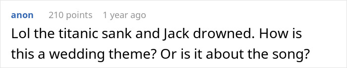 But does this heart-wrenching film make you think of all of the joy and excitement of a wedding day? Below, you’ll find a story that wassharedon the “Am I the [Jerk]?” subreddit, detailing how one man has had a difficult time getting on board with his fiancé’s dream wedding theme, as well as a conversation with Jhona Yellin ofBespoke Bride.