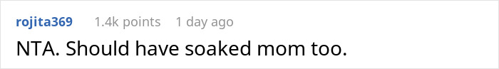 The last time the man’s niece approached his son, the man told her to “not think about it” because the boy said no. However, as the girl didn’t listen and threw the water balloon at him anyway, the man grabbed the hose beside him and drenched her for a solid 30 seconds.
