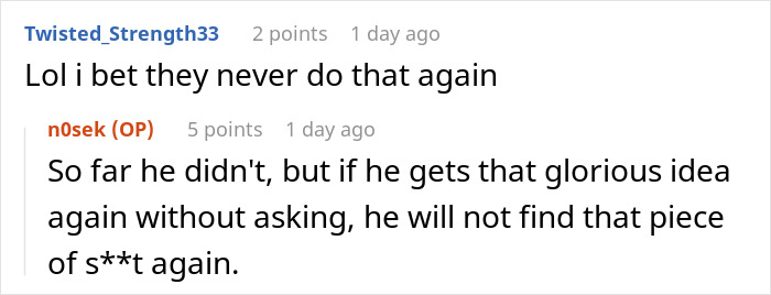 Unfortunately, things took a turn for the worse after just a few days. Unwilling to tolerate this kind of disrespect, redditor u/n0sek thought that some action would send a clearer message than trying to be diplomatic again.