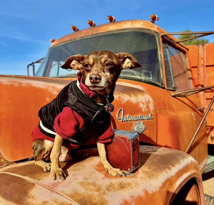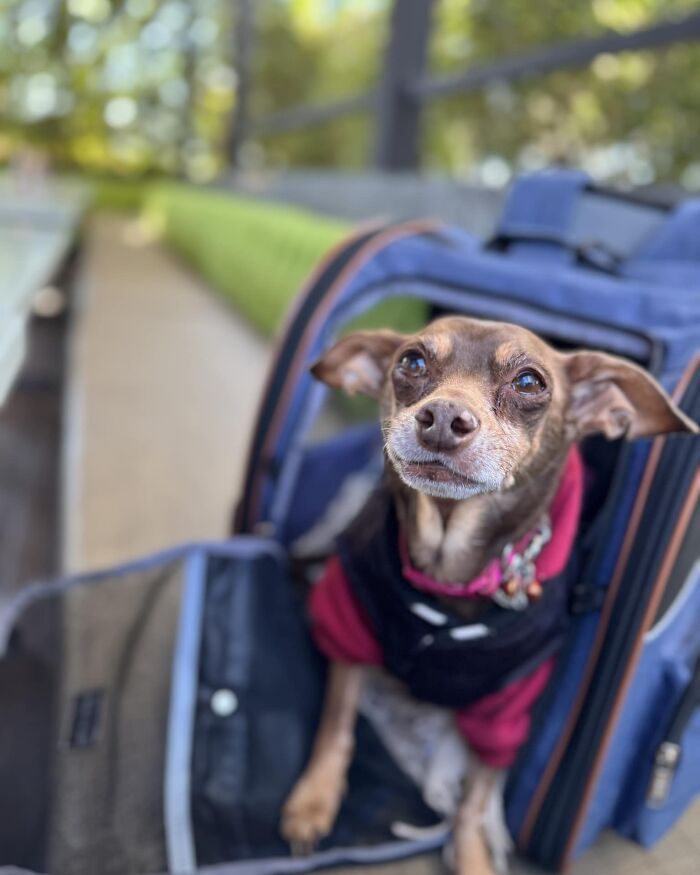 “Just today, my husband and I tried to leave all our dogs at home to go eat at a restaurant, but Damian ran up to me, wanting to come along. Of course, I felt bad and took him with us.”