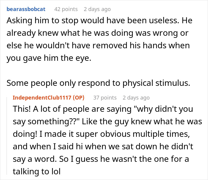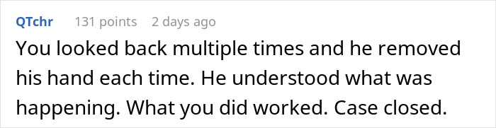 Feeling someone else’s hand that had just been licked clean on yours is also something that would typically repel most people. But the redditor pointed out that he believed such a method ought to work with the bothersome passenger behind him, after multiple ones that didn’t.